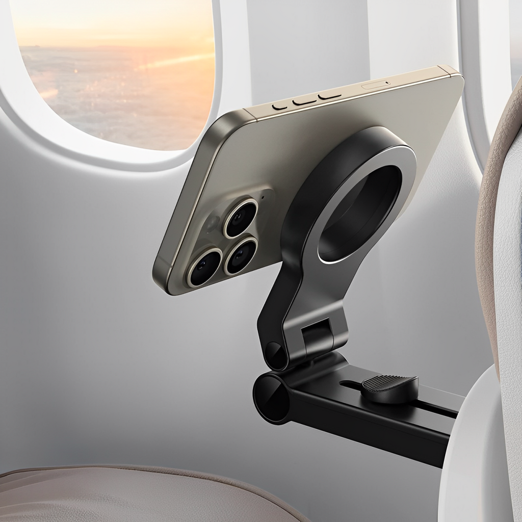 Strong Magnetic Grip: Equipped with 20 powerful magnets, it firmly holds your phone in place, ensuring stability even on bumpy flights or uneven surfaces.